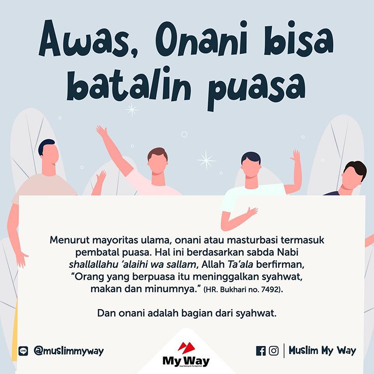 Ibnu Qudamah dalam Al Mughni berkata, “Jika seseorang mengeluarkan mani secara sengaja dengan tangannya, maka ia telah melakukan suatu yang haram. Puasanya tidaklah batal kecuali jika mani itu keluar. Jika mani keluar, maka batallah puasanya. Karena perbuatan ini termasuk dalam makna qublah yang timbul dari syahwat”.